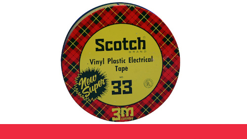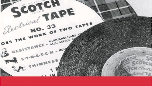 3M solicita una patente en enero de 1946 y la cinta N°33 (originalmente de color blanco o amarillo) se convierte en el nuevo estándar para conexiones eléctricas aislantes.