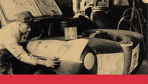 La Segunda Guerra Mundial genera muchas innovaciones en el mundo industrrial incluyendo la invención de la cinta de PVC, el vinilo plastificado.