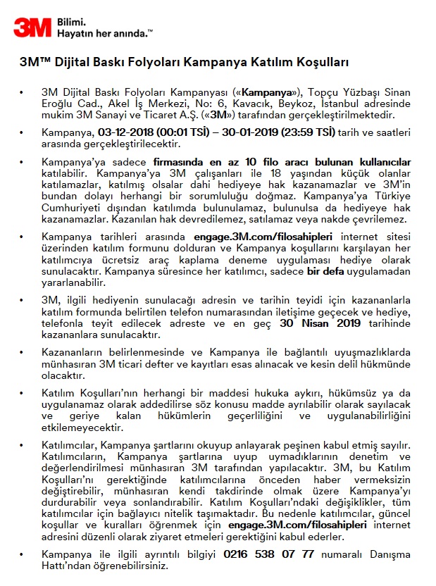 3M™ Dijital Baskı Araç Kaplama Folyoları ile birlikte araçlarınız gezdikçe şirketiniz daha çok kişiye ulaşabilir ve tüketiciler üzerinde daha prestijli bir etki yaratabilirsiniz. Araç kaplama, sizlere uygun bir maliyet ile reklam avantajı sunduğu gibi aynı zamanda kaplanan folyo sayesinde aracın dış zeminindeki boyanın korunmasını sağlar. Araç çizik ve darbelere karşı daha dayanıklı hale gelir.